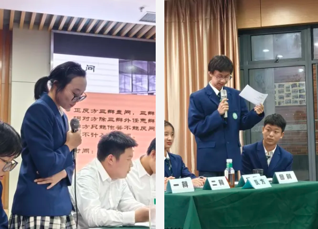 辩手们热情澎湃,唇枪舌剑,最终以反方国际部高一(1)班代表队获胜落下帷幕,反方二辩柯雯馨同学获得最佳辩手奖。
