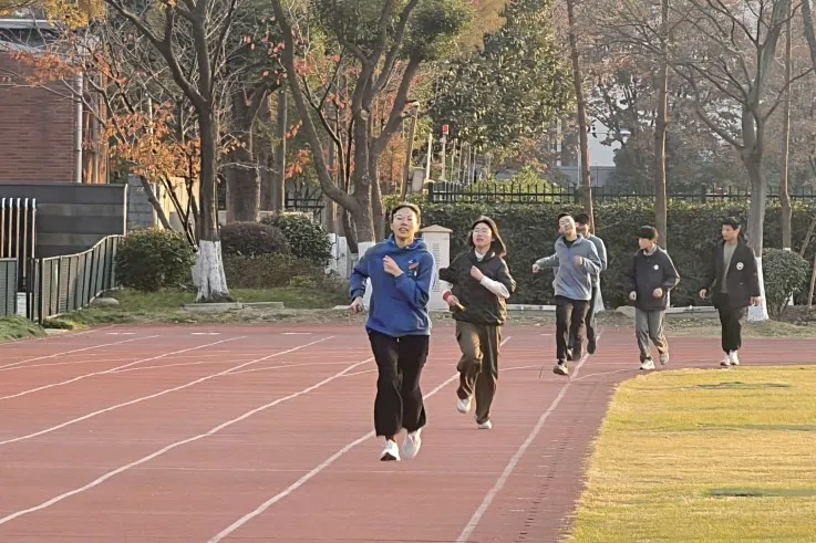 户外长跑接力以“师生同心接力赛,奔跑同行向未来”为主题,红队名为“乘风”,蓝队号为“飞燃”,每队均由两名教师与两名学生混合组成。