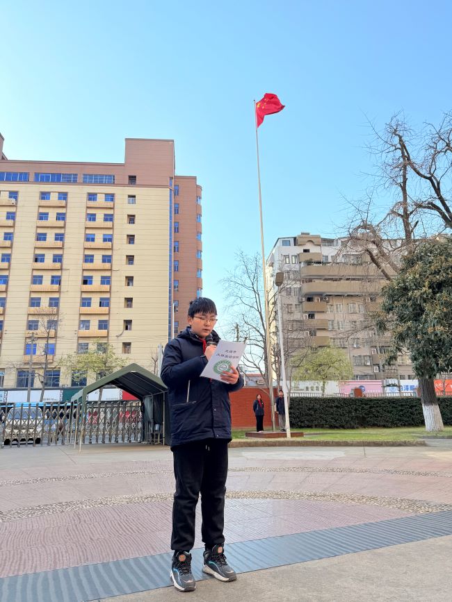 大家早上好!我是来自初二10班的鲁铠州,今天,站在飘扬的五星红旗下,我想请大家记住一个特殊的数字:15岁。