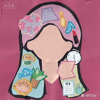 创意阐述:创作时略去面部的具象刻画,以长发为卷,划分出自我、生活、工作三个维度的天地。不同元素错落其间,交织成生命里三者相融共生的生动图景。