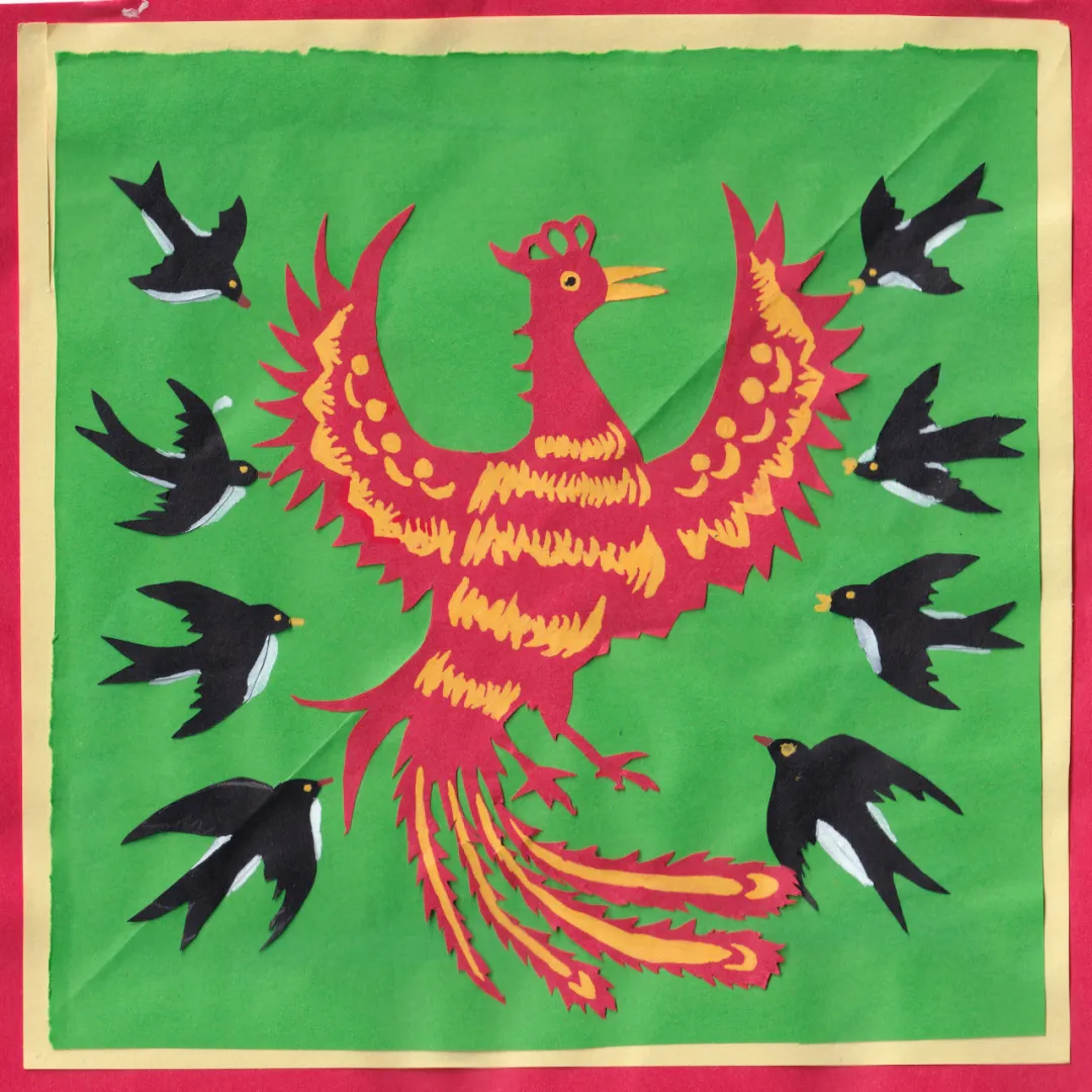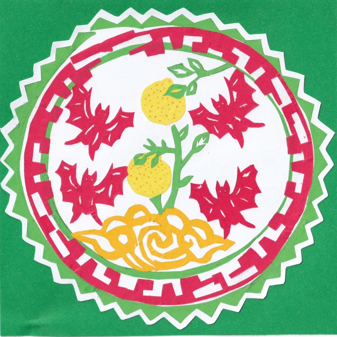 用了两款AI软件,风格差别明显,一款色彩更跳脱,一款色彩偏向柔和复古调。调口令时,加 “库淑兰剪纸锯齿纹”“大红配翠绿” 这类细节,生成的图才更贴剪纸味。难的是AI老把元素搞乱,得反复改口令。我最满意那张 “百鸟朝凤”,凤凰周围飞鸟的排布,还有锯齿感的花纹,总算有老剪纸的那股子鲜活劲儿了。