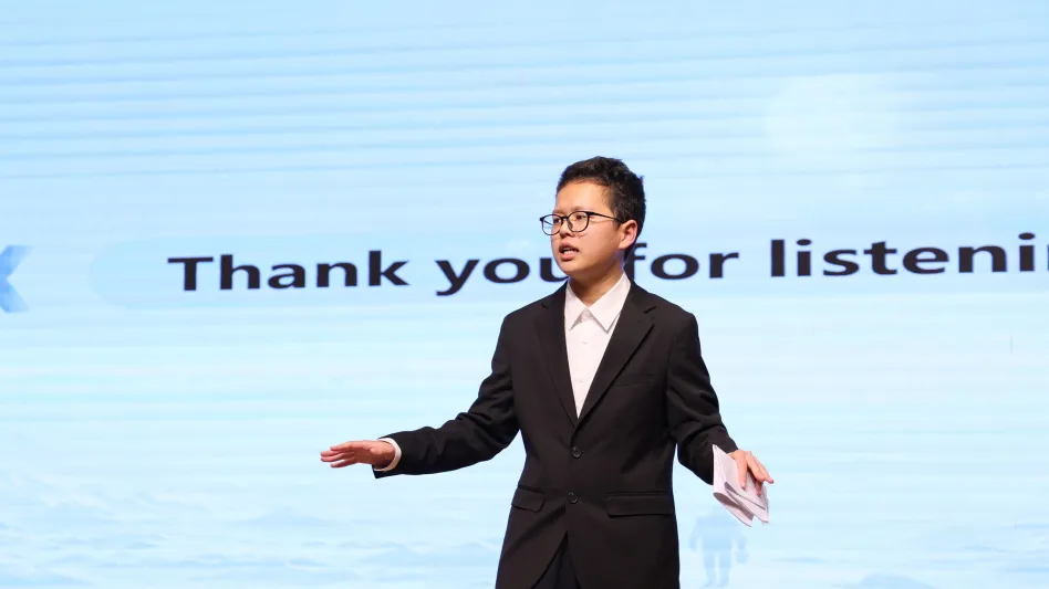 第五位上场的是匡煜铭同学,他的演讲名为《History and Me:From Textbook to Lifelong Dialogue》。多年前,匡同学因一时间不适应课业升级的节奏而短暂陷入消沉。所幸在历史老师的耐心答疑与技巧传授下,他重拾信心,再度振奋起来。爱上历史后,他从湖北省博物馆越王勾践剑中感受历史的鲜活,到贵州苗寨探寻非遗染色技艺的传承,历史就这样一步步成为了照亮他成长之路的光。