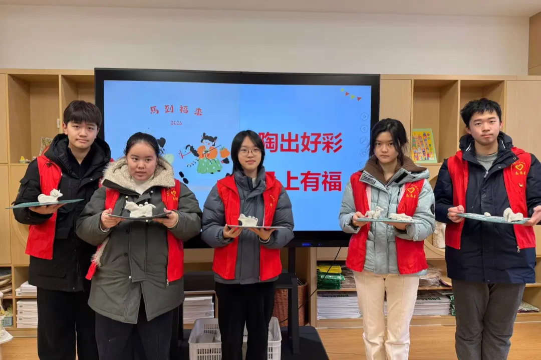 高一(2)班的姚沛昕、葛一泽、张梓悦、周沐萱、顾梓溪同学来到了无锡残友之家开展了“陶出好彩,马上有福”陶艺制作活动志愿服务,活动覆盖幼儿园至高中跨学段未成年人、特殊需要儿童与普校儿童融合参与,以适配化设计与暖心陪伴,让传统手工艺的魅力惠及每一个孩子,为寒假注入满满温情与文化活力。
