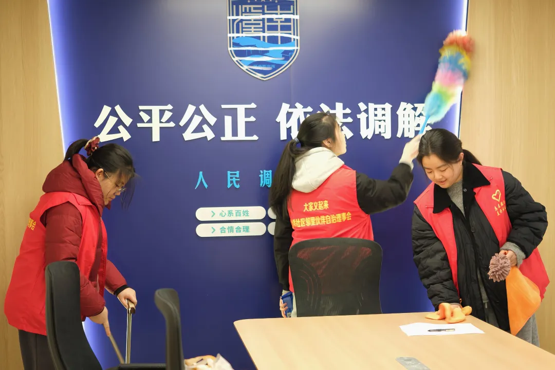 参观结束后,志愿者们随即投入到展厅的环境清理工作中。大家分工协作,有的手持扫帚仔细清扫地面,有的负责拖拭地板,还有的认真整理书架上的社区刊物。经过一个多小时的共同努力,整个展厅窗明几净、焕然一新,为前来参观的居民营造了更加整洁舒适的环境。做志愿服务不仅可以是做大事,也在于点滴善举之中。当你用手去触碰一个社区的温度时,自己也会变得温暖起来。