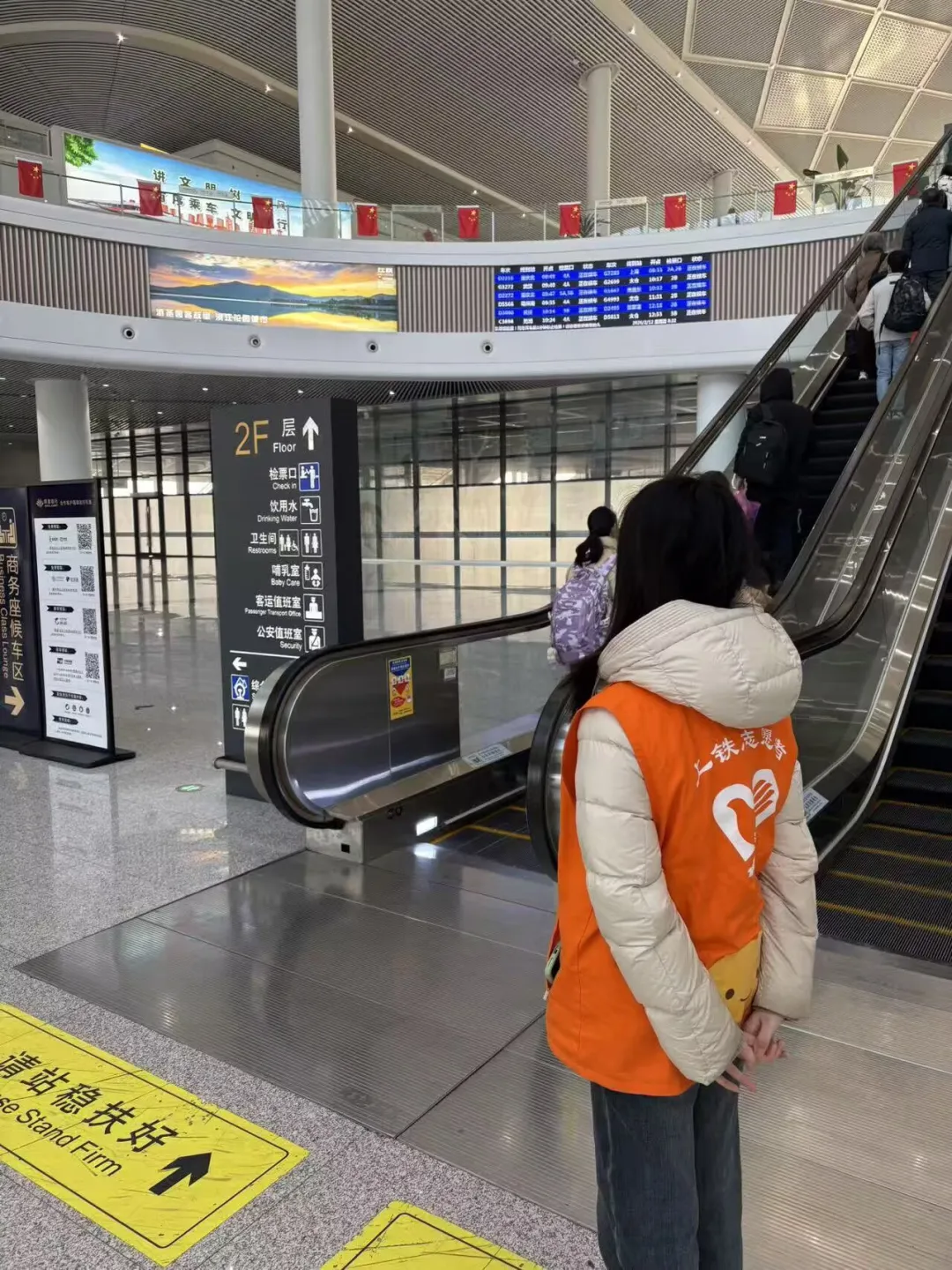 国际部高一的姜添怡、朱敏宸同学参与了在江阴高铁站开展的志愿服务活动。高铁站人流量大、节奏快,对志愿者的细心和责任感提出了更高的要求。在服务过程中,志愿者需要时刻关注周围旅客的情况,尤其是在电梯口等容易发生意外的地方,及时提醒和协助有需要的人。在检票口为旅客指路时,也需要更加耐心、清晰地与他人沟通。